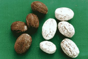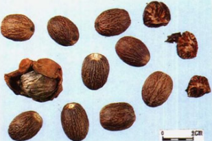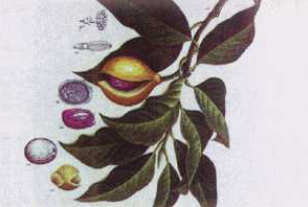 【標題】 肉豆蔻 【拼音】 Roudoukou 【概述】 為肉豆蔻科植物肉豆蔻myristica fragrans Houtt的成熟種仁。主產于馬來西亞、印度尼西亞;我國廣東、廣西、云南亦有栽培。冬、春兩季果實成熟時采收。除去皮殼后,干燥,煨制去油用。 【性味歸經】 辛,溫。歸脾、胃、大腸經。 【功效】 澀腸止瀉,溫中行氣。 【應用】 1.虛瀉,冷痢。本品辛溫而澀,入中焦,能暖脾胃,固大腸,止瀉痢,為治療虛寒性瀉痢之要藥。治脾胃虛寒之久瀉、久痢者,常與肉桂、干姜、黨參、白術、訶子等藥同用;若配補骨脂、五味子、吳茱萸,可治脾腎陽虛,五更泄瀉者,如四神丸(《證治準繩》)。 2.胃寒脹痛,食少嘔吐。本品辛香溫燥,能溫中理脾、行氣止痛。治胃寒氣滯、脘腹脹痛、食少嘔吐等證,常與木香、干姜、半夏等藥同用。 【注意】 濕熱瀉痢者忌用。 【用法用量】 煎服,3~9g;入丸、散服,每次0.5~1g。內服須煨熟去油用。 【臨床研究】 1.化學成分:肉豆蔻含揮發油5~15%。另含肉豆蔻醚、丁香酚,異丁香酚及多種萜烯類化合物。 2.藥理作用:肉豆蔻所含揮發油,少量能促進胃液的分泌及胃腸蠕動,而有開胃和促進食欲,消脹止痛的功效;但大量服用則有抑制作用,且有較顯著的麻醉作用;揮發油中的萜類成分對細菌和霉菌均有抑制作用。肉豆蔻醚對正常人有致幻、抗炎作用;肉豆蔻及肉豆蔻醚能增強色胺的作用,體內外試驗均對單胺氧化酶有中度的抑制作用。肉豆蔻對MCA和DMBA誘發的小鼠子宮癌及皮膚乳頭狀瘤有抑制作用。 3.臨床研究: 據臨床報道,用煨肉蔻、炒五味子、煨木香、訶子肉、炒吳茱萸共研末,開水調服。治療慢性腹瀉效佳.(中國中醫秘方大全(上冊)北京:文匯出版社,1989)。用肉豆蔻、車前子、訶子、木香各等分,研為細末,用姜汁調成糊狀,敷于臍部治療嬰兒腹瀉,一般l~2次可愈(中原醫刊,1986,4:21)。 4.不良反應:肉豆蔻所含揮發油中有效成份肉豆蔻醚具有一定的毒性,動物試驗可引起肝變性;肉豆蔻醚對正常人有致幻作用。對人的大腦有中度興奮作用。在中毒時,輕者出現幻覺,或惡心,眩暈;重者則譫語,昏迷,瞳孔散大,呼吸變慢,反射消失,甚至死亡。中毒原因及預防:肉豆蔻未經炮制去油,或用量過大,可引起中毒。一般不可用生品。 【參考文獻】 1.《藥性論》:“能主小兒吐逆不下乳,腹痛;治宿食不消,痰飲。” 2.《開寶本草》:“主溫中消食,止泄,治積冷心腹脹痛,霍亂中惡”。 3.《本草經疏》:“肉豆蔻辛味能散能消,溫氣能和中通暢,其氣芬芳,香氣先入脾,脾主消化,溫和而辛香,故開胃,胃喜暖故也。” 【圖片】 肉豆蔻 ![]() 肉豆蔻/煨肉豆蔻 肉豆蔻《中藥學》 ![]() 肉豆蔻《常用中藥》 肉豆蔻《本草圖苑》 ![]() 藥材肉豆蔻 ![]() 藥材肉豆蔻橫切面 ![]() (責任編輯:Doctor001) |