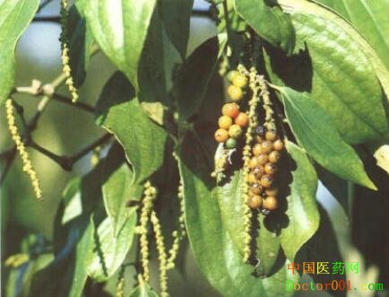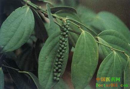 【標題】 胡椒 【拼音】 Hujiao 【概述】 為胡椒科植物胡椒Piper nigrum L.的干燥近成熟或成熟果實。主產于海南、廣東、廣西、云南等地。秋末至次春果實呈暗綠色時采收,曬干,為黑胡椒;果實變紅時采收,水浸,擦去果肉,曬干,為白胡椒。生用,用時打碎。 【性味歸經】 辛,熱。歸胃、大腸經。 【功效】 溫中散寒,下氣消痰。 【應用】 1.胃寒腹痛,嘔吐泄瀉。本品味辛性熱,能溫中散寒止痛,用治胃寒脘腹冷痛、嘔吐,可單用研末入豬肚中燉服,或與高良姜、蓽茇等同用;治反胃及不怡飲食,可與半夏、姜汁為丸服;治脾胃虛寒之泄瀉,可與吳茱萸、白術等同用。 2.癲癇證。本品辛散溫通,能下氣行滯,消痰寬胸,治痰氣郁滯,蒙蔽清竅的癲癇痰多證,常與蓽茇等分為末服。 此外,作調味品,有開胃進食的作用。 【用法用量】 煎服,2~4g;研末服,每次0.6~1.5g。外用適量。 【臨床研究】 1.化學成分:含揮發油,黑胡椒含1.2%~2.6%,白胡椒約含0.8%。油中主要成分為胡椒醛、二氫香芹醇、氧化石竹烯、隱品酮、順對▇烯醇、順對一▇二烯醇及反-松香芹醇。尚含胡椒堿、胡椒林堿、胡椒油A、B、C、胡椒新堿等。 2.藥理作用:胡椒堿能延長給戊巴比妥的大鼠睡眠時間,抗電或戊四氮致動物驚厥的作用;口服本品能促進大鼠膽汁的分泌;并有抗炎作用。 3.臨床研究: 生胡椒10粒,大棗3枚,甜杏仁5個,混合搗碎,溫開水調服。成人每日1劑,體弱或兒童酌減,治療胃痛20例,效果滿意(中醫雜志,1966,2:14);白胡椒50g、血竭、冰片各5g、硫磺10g,研末,用凡士林調成糊狀,均勻涂于患處皮膚,用于治療急、慢性濕疹43例,治愈32例,有效8例,無效3例(中國鄉村醫生2000,12:32);白胡椒7粒,蔥白7段(每段1寸長左右),搗爛成糊狀,用紗布包好,敷于臍部,治療尿潴留30例,均取得滿意效果(山東醫藥,2000,18:3)。另有用胡椒治療小兒腹瀉、牙痛、凍瘡、虐疾等。 【參考文獻】 1.《新修本草》:“主下氣,溫中,去痰,除臟腑中風冷。” 2.《本草經疏》:“胡椒,其味辛,氣大溫,性雖無毒,然辛溫太甚,過服未免有害,氣味俱厚,陽中之陽也。其主下氣、溫中、去痰,除臟腑中風冷者,總因腸胃為寒冷所乘,以致臟腑不調,痰氣逆上,辛溫暖腸胃而散風冷,則痰氣降,臟腑和,諸證廖矣。” 【圖片】 胡椒 ![]() 胡椒植株 ![]() 藥材胡椒(白胡椒) ![]() 藥材胡椒(黑胡椒) ![]() 【表格】 胡椒《中藥歌決》 【歌決】 胡椒辛熱胃大腸,健胃祛風鎮痛良; 風冷積滯嘔吐瀉,寒疝胃痛腹膨脹。 (責任編輯:Doctor001) |
