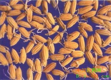【標(biāo)題】 稻芽 【拼音】 Daoya 【概述】 為禾本科植物稻Oryza sativa L.的成熟果實(shí)經(jīng)發(fā)芽干燥而成。全國(guó)多數(shù)地方均可生產(chǎn),主產(chǎn)南方各省區(qū)。將稻谷用水浸泡后,保持適宜的溫、濕度,待須根長(zhǎng)至約1cm時(shí),干燥。生用或炒用。 【性味歸經(jīng)】 甘,溫。歸脾、胃經(jīng)。 【功效】 消食和中,健脾開(kāi)胃。 【應(yīng)用】 米面薯芋食滯證及脾虛食少消化不良。本品消食和中,作用和緩,助消化而不傷胃氣。常與麥芽相須為用,以提高療效。若治脾虛食少,亦常與砂仁、白術(shù)、炙甘草等同用,如谷神丸(《澹寮方》)。 【用法用量】 煎服,9~15g。生用長(zhǎng)于和中;炒用偏于消食。 【成藥】 谷芽 【臨床研究】 1.化學(xué)成分:主要有效成分為淀粉酶,含量較麥芽低。尚含蛋白質(zhì)、脂肪油、淀粉、麥芽糖、腺嘌呤、膽堿及18種氨基酸等。 2.藥理作用:所含淀粉酶能幫助消化。實(shí)驗(yàn)表明,谷芽可通過(guò)抑制肥大細(xì)胞組織胺釋放而具有抗過(guò)敏活性。 【參考文獻(xiàn)】 1.《名醫(yī)別錄》:“主寒中。下氣,除熱”。 2.《本草綱目》:“消導(dǎo)米面諸果食積。” 【附注】 過(guò)去曾以稻、粟、黍等植物的果實(shí)發(fā)芽作谷芽入藥,認(rèn)為藥效亦相近!吨袊(guó)藥典》(1985年版)始將粟芽以谷芽為正名收載,并同時(shí)收載且單列稻芽。 【圖片】 稻 ![]() 稻芽 藥材稻芽 ![]() (責(zé)任編輯:Doctor001) |