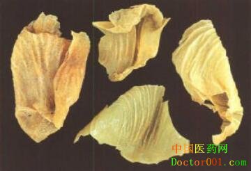 【標題】 雞內金 【拼音】 Jineijin 【概述】 為雉科動物家雞Gallus gallus domesticus Brisson 的沙囊內壁。全國各地均產。殺雞后,取出雞肫,趁熱剝取內壁,洗凈,干燥。生用、炒用或醋制入藥。 【性味歸經】 甘,平。歸脾、胃、小腸、膀胱經。 【功效】 消食健胃,澀精止遺。 【應用】 1.飲食積滯,小兒疳積。本品消食化積作用較強,并可健運脾胃,故廣泛用于米面薯芋乳肉等各種食積證。病情較輕者,單味研未服即有效,如《千金方》獨用本品治消化不良引起反胃吐食;若配山楂、麥芽等,可增強消食導滯作用,治療食積較重者。若與白術、山藥、使君子等同用,可治小兒脾虛疳積。 2.腎虛遺精、遺尿。本品可固精縮尿止遺。如《吉林中草藥》即以雞內金單味炒焦研未,溫酒送服治遺精;若以本品配菟絲子,桑螵蛸等,可治遺尿,如雞肶胵散(《圣惠方》)。 3.砂石淋證,膽結石。本品入膀胱經,有化堅消石之功!夺t林集要》以本品“燒存性”,治小便淋瀝,痛不可忍。現常與金錢草等藥同用,治砂石淋證或膽結石。 【注意】 脾虛無積滯者慎用。 【用法用量】 煎服,3~10g ;研未服,每次1.5~3g。研未服效果比煎劑好。 【臨床研究】 1.化學成分:雞內金含胃激素、角蛋白、微量胃蛋白酶、淀粉酶、多種維生素與微量元素,以及18種氨基酸等。 2.藥理作用:口服粉劑后,胃液分泌量、酸度和消化力均見提高,胃運動機能明顯增強;體外實驗能增強胃蛋白酶、胰脂肪酶活性。動物實驗可加強膀胱括約肌收縮,減少尿量,提高醒覺。雞內金的酸提取物可加速放射性鍶的排泄。 3.臨床研究: 據報道,用雞內金或經適當配伍可用于治療消化不良、體虛遺精、無阻力性尿失禁、小兒遺尿、尿頻等多種疾病,療效滿意。近年還報道:用金礬散(炙雞內金、枯礬各等分)以淡鹽糖水送服,治療嬰幼兒腹瀉100例,效果滿意(云南中醫雜志,1984,3∶21);服用由雞內金、茵陳等組成的摩羅丹治療萎縮性胃炎325例,每次服1~2丸,日3次,飯前服,連服3個月為1療程,經胃鏡復查,有效率60.9%(中醫藥,1989,3∶25);用雞內金50g、青皮、陳皮各20g,研細末,每次服10g,日3次,治療胃石癥280例,治愈率96.8%(時珍國醫國藥,1988,2∶117);此外,又用本品治療骨髓前角灰質炎后遺癥、扁平疣等疾病。 【參考文獻】 1.《神農本草經》:“主泄利。” 2.《日華子本草》:“止泄精,并尿血、崩中、帶下、腸風瀉痢。” 3.《滇南本草》:“寬中健脾,消食磨胃。治小兒乳食結滯,肚大筋青,痞積疳積。” 【附注】 雞內金炮制后淀粉酶活性下降,而蛋白酶活性增強;醋雞內金的氨基酸總量亦有所提高(中國中藥雜志,1994,4∶222)。 【圖片】 家雞 ![]() 藥材雞內金 ![]() 雞 雞內金 (責任編輯:Doctor001) |