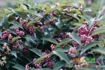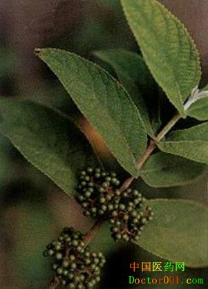 【標題】 紫珠 【拼音】 Zizhu 【概述】 為馬鞭草科植物杜虹花Callicarpa formosana Rolfe或紫珠C.bodinieri Levl.的葉。前者分布于陜西及河南南部至長江以南各省,后者分布于東南沿海各地。夏、秋季采收,除去雜質,曬干,生用。 【性味歸經】 苦、澀,涼。歸肝、肺、胃經。 【功效】 涼血收斂止血,清熱解毒。 【應用】 1.出血證。本品味苦澀而性涼,既能收斂止血,又能涼血止血,適用于各種內外傷出血,尤多用于肺胃出血之證。可單獨應用,也可配其它止血藥物同用。如治咯血、衄血、嘔血、衄血,可與大薊、白及等同用;治尿血、血淋,可與小薊、白茅根等同用;治便血、痔血,可與地榆、槐花等同用;治外傷出血,可單用搗敷或味末敷摻,或以紗布浸紫珠液覆蓋壓迫局部。 2.燒燙傷、熱毒瘡瘍。本品苦澀寒涼,有清熱解毒斂瘡之功。治燒燙傷,用本品研末撒布患處,或用本品煎煮濾取藥液,浸濕紗布外敷;治熱毒瘡瘍,可單用鮮品搗敷,并煮汁內服,也可配其它清熱解毒藥物同用。 【用法用量】 煎服,10~15g;研末1.5~3g 。外用適量。 【臨床研究】 1.化學成分:含氨基酸、酚類、鞣質、還原性物質、苷類、黃酮和內酯等。 2.藥理作用:本品可使局部血管收縮,縮短凝血時間及凝血酶元時間,對纖溶系統有顯著的抑制作用;煎液對金黃色葡萄球菌、白色葡萄球菌、鏈球菌、大腸桿菌、福氏痢疾桿菌、傷寒桿菌、綠膿桿菌等均有抑制作用。 3.臨床研究: 用紫珠、地稔各15g,水煎并濃縮為500ml備用。治嘔血或單純黑便,每次50ml,每日3~4次;治急性大出血,取本品放置冰凍至3℃~4℃時,每次經胃管注入胃內50ml,3分鐘抽出,如此反復2~3次,抽盡胃內容物后再灌注200ml,每日1~3次。共治療上消化道出血305例,總治愈率為93.1%,總有效率為95.4%(中藥通報,1988,8:48);用紫珠葉制成3∶1水煎液。先清潔創面,后用單層紗布浸濕藥液,覆蓋創面,膠布固定,每日換藥1次。共治療化膿性皮膚潰瘍232例,總治愈率為98.25%,平均治愈天數為9.87天(中草藥通訊,1972,2:42)。此外,還可治療婦女陰道炎、功能性子宮出血、拔牙后出血等,水煎劑也可用以代替碘酒、乙醇作皮膚黏膜消毒。 【參考文獻】 1.《本草拾遺》:“解諸毒物,癰疽,喉痹,飛尸蠱毒,毒腫,下瘺,蛇虺、蟲螫、狂犬毒,并煮汁服;亦煮汁洗瘡腫,除血長膚。” 2.《植物名實圖考》:“洗瘡毒。治陡發頭腫、頭風,溫酒服,煎水洗之。又治跌打損傷,去風濕。” 【圖片】 杜虹花 ![]() 紫珠 紫珠植株(杜虹花或白棠子樹) ![]() (責任編輯:Doctor001) |